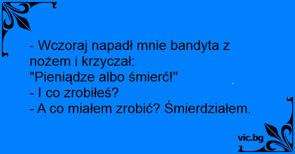 - Wczoraj napadł mnie bandyta z nożem i krzyczał: