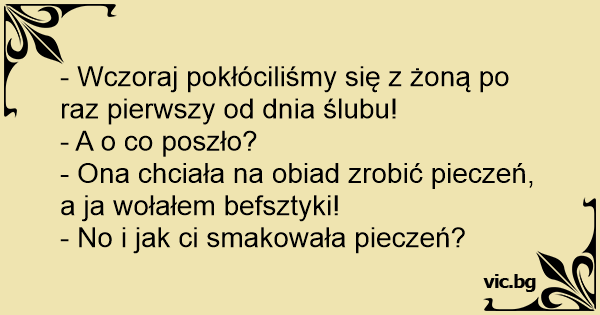 - Wczoraj pokłóciliśmy się z żoną po raz pierwszy od dnia ślubu!