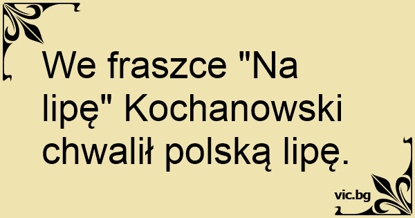 We fraszce "Na lipę" Kochanowski chwalił polską lipę.