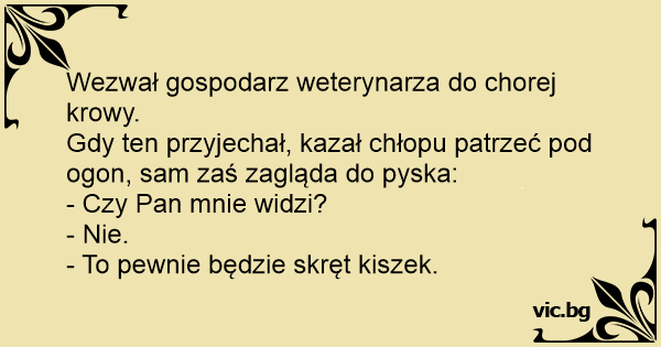 Gdy ten przyjechał, kazał chłopu patrzeć pod ogon, sam zaś zagląda do pyska: