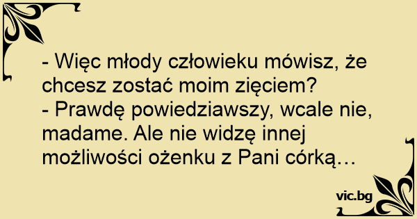 - Więc młody człowieku mówisz, że chcesz zostać moim zięciem?