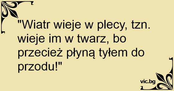 "Wiatr wieje w plecy, tzn. wieje im w twarz, bo przecież płyną tyłem do przodu!"