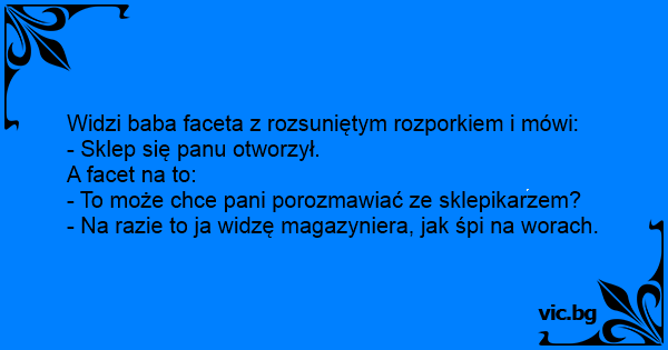 Widzi baba faceta z rozsuniętym rozporkiem i mówi: