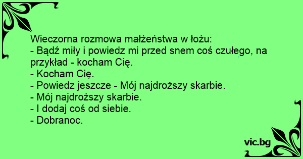 - Bądź miły i powiedz mi przed snem coś czułego, na przykład - kocham Cię.