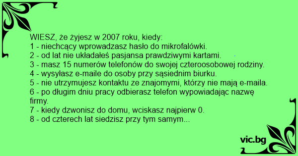 WIESZ, że żyjesz w 2007 roku, kiedy: