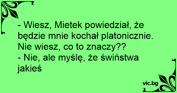 - Wiesz, Mietek powiedział, że będzie mnie kochał platonicznie. Nie wiesz, co to znaczy??