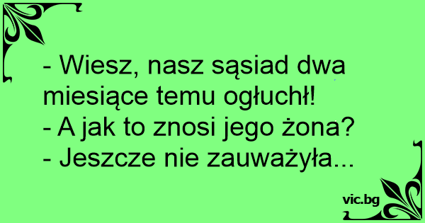 - Wiesz, nasz sąsiad dwa miesiące temu ogłuchł!