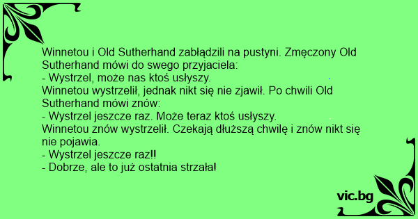 Winnetou i Old Sutherhand zabłądzili na pustyni. Zmęczony Old Sutherhand mówi do swego przyjaciela: