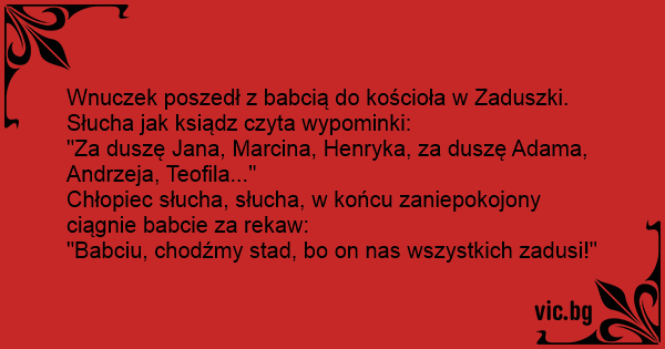 "Babciu, chodźmy stad, bo on nas wszystkich zadusi!"