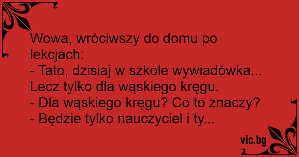 - Tato, dzisiaj w szkole wywiadówka... Lecz tylko dla wąskiego kręgu.