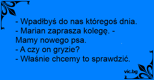 - Wpadłbyś do nas któregoś dnia. - Marian zaprasza kolegę. - Mamy nowego psa.