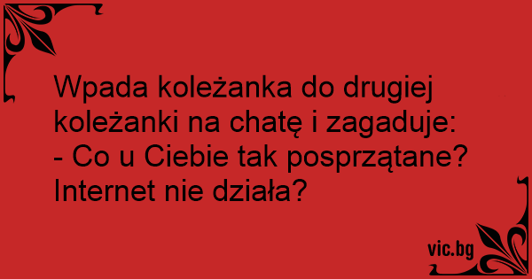 Wpada koleżanka do drugiej koleżanki na chatę i zagaduje: