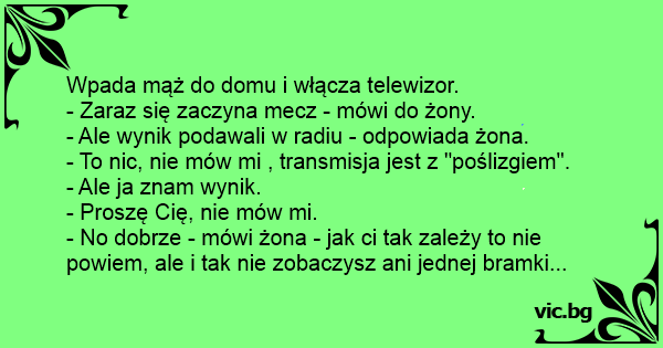 - No dobrze - mówi żona - jak ci tak zależy to nie powiem, ale i tak nie zobaczysz ani jednej bramki...