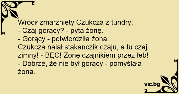 Czukcza nalał stakanczik czaju, a tu czaj zimny! - BĘC! Żonę czajnikiem przez łeb!