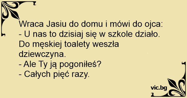 - U nas to dzisiaj się w szkole działo. Do męskiej toalety weszła dziewczyna.