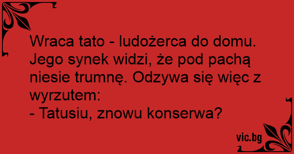 Copiii unui canibal isi observa tatal venind inspre coliba cu un sicriu in spate... Acestia exclama: - Ah,la dracu... Iar mancam conserve.
