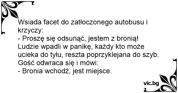 Wsiada facet do zatłoczonego autobusu i krzyczy: