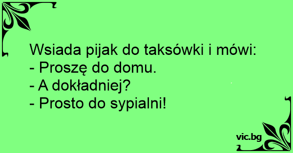 Wsiada pijak do taksówki i mówi: