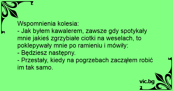 Холостяк розповідає: — Раніше на весіллях бабульки штрикали мене пальцем під ребра і питали: "Ти наступний?" Вони перестали це робити, коли я став у них запитувати те ж саме на похоронах.