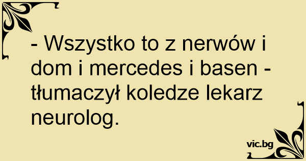 - Wszystko to z nerwów i dom i mercedes i basen - tłumaczył koledze lekarz neurolog.