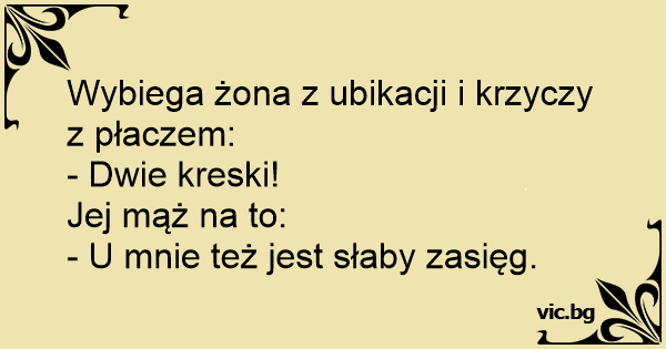 Wybiega żona z ubikacji i krzyczy z płaczem:
