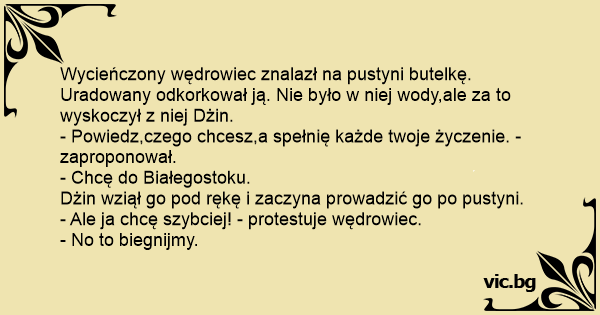 Wycieńczony wędrowiec znalazł na pustyni butelkę.