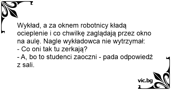 Wykład, a za oknem robotnicy kładą ocieplenie i co chwilkę zaglądają przez okno na aulę. Nagle wykładowca nie wytrzymał:
