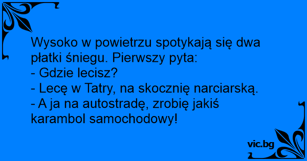 Wysoko w powietrzu spotykają się dwa płatki śniegu. Pierwszy pyta:
