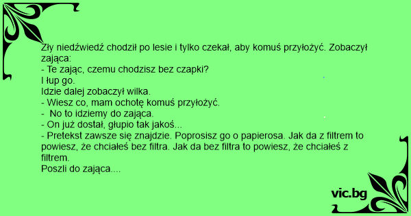 Zły niedźwiedź chodził po lesie i tylko czekał, aby komuś przyłożyć. Zobaczył zająca: