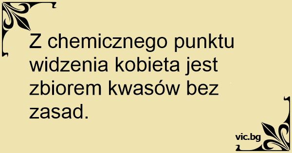 Z chemicznego punktu widzenia kobieta jest zbiorem kwasów bez zasad.