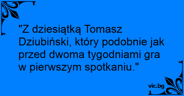 "Z dziesiątką Tomasz Dziubiński, który podobnie jak przed dwoma tygodniami gra w pierwszym spotkaniu."