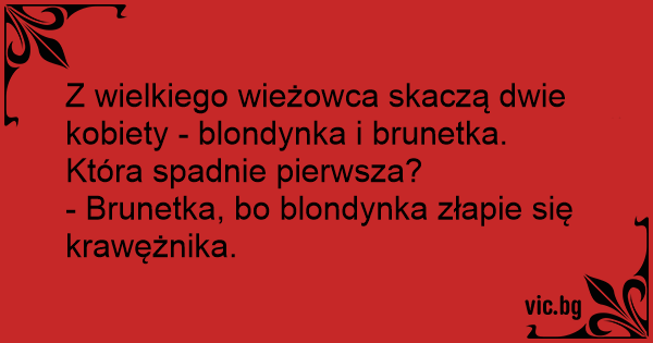 Z wielkiego wieżowca skaczą dwie kobiety - blondynka i brunetka. Która spadnie pierwsza?