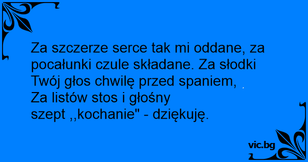 Za szczerze serce tak mi oddane, za pocałunki czule składane. Za słodki Twój głos chwilę przed spaniem,