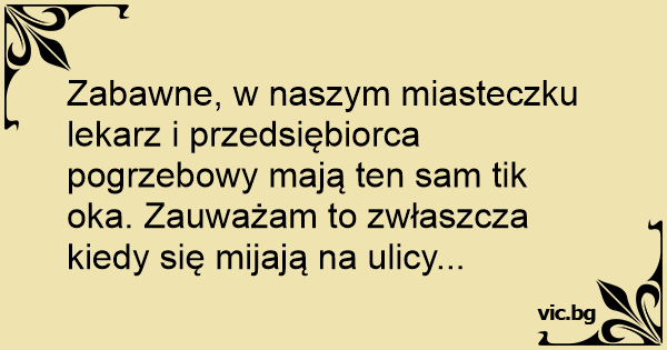 Zabawne, w naszym miasteczku lekarz i przedsiębiorca pogrzebowy mają ten sam tik oka. Zauważam to zwłaszcza kiedy się mijają na ulicy...