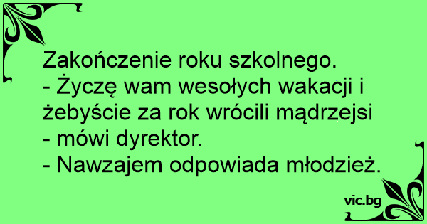 - Życzę wam wesołych wakacji i żebyście za rok wrócili mądrzejsi - mówi dyrektor.
