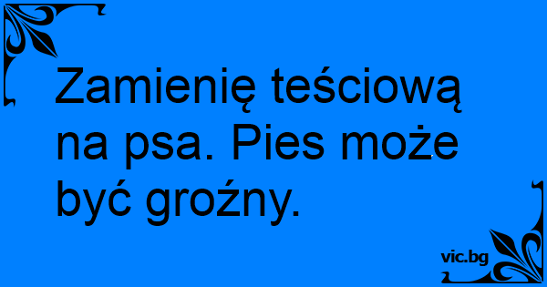 Zamienię teściową na psa. Pies może być groźny.