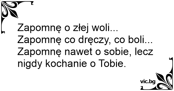 Zapomnę o złej woli... Zapomnę co dręczy, co boli... Zapomnę nawet o sobie, lecz nigdy kochanie o Tobie.
