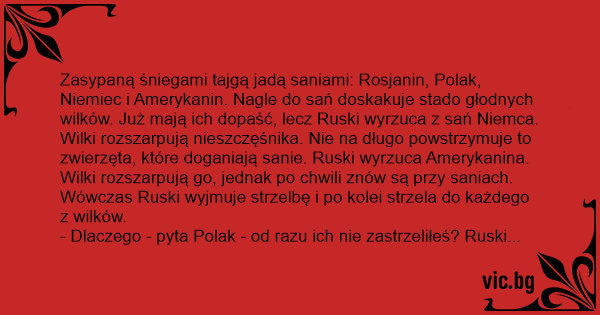 - Dlaczego - pyta Polak - od razu ich nie zastrzeliłeś? Rusкi wyjmuje butelkę wódki.
