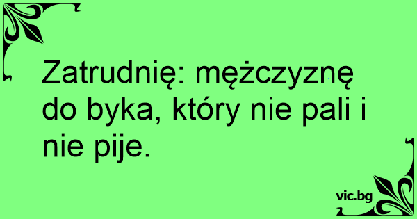 Zatrudnię: mężczyznę do byka, który nie pali i nie pije.
