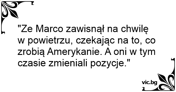 "Ze Marco zawisnął na chwilę w powietrzu, czekając na to, co zrobią Amerykanie. A oni w tym czasie zmieniali pozycje."
