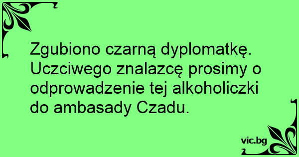 Uczciwego znalazcę prosimy o odprowadzenie tej alkoholiczki do ambasady Czadu.