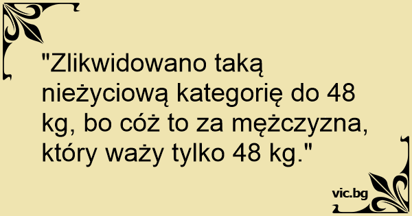 "Zlikwidowano taką nieżyciową kategorię do 48 kg, bo cóż to za mężczyzna, który waży tylko 48 kg."