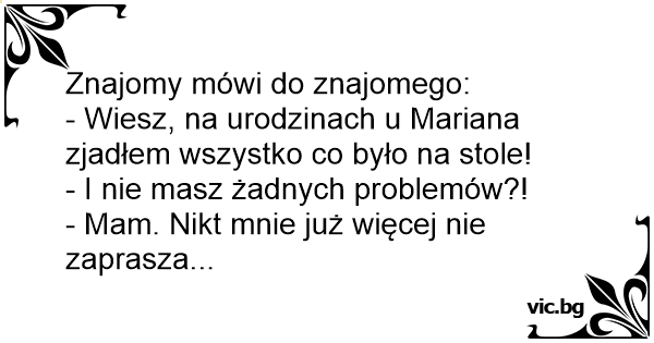 - Wiesz, na urodzinach u Mariana zjadłem wszystko co było na stole!