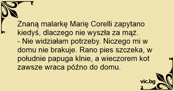 Znaną malarkę Marię Corelli zapytano kiedyś, dlaczego nie wyszła za mąż.