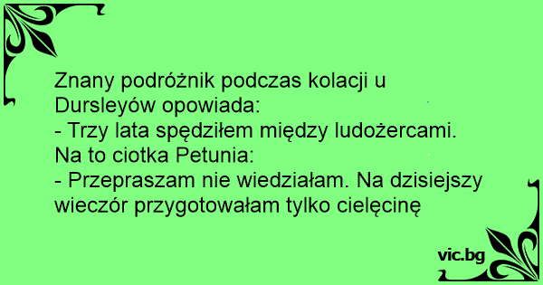 Znany podróżnik podczas kolacji u Dursleyów opowiada: