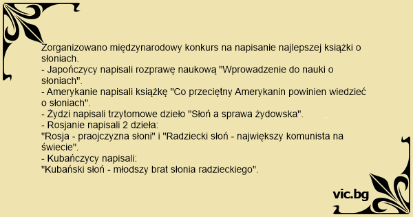 Zorganizowano międzynarodowy konkurs na napisanie najlepszej książki o słoniach.