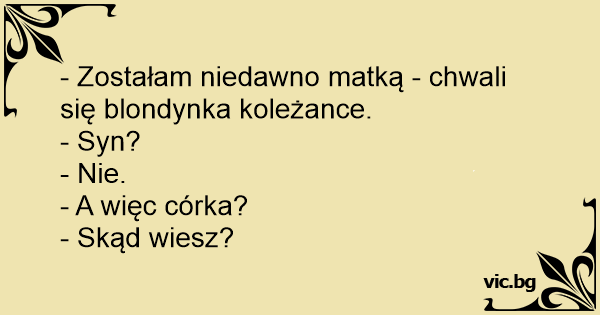 - Zostałam niedawno matką - chwali się blondynka koleżance.
