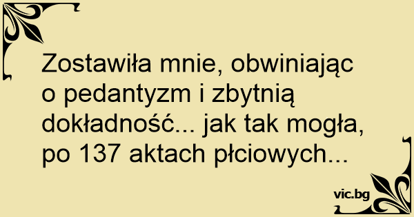 Zostawiła mnie, obwiniając o pedantyzm i zbytnią dokładność... jak tak mogła, po 137 aktach płciowych...
