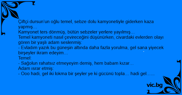 - Peki tamam, ama inan ki babam çok kızacak, demiş ve gitmiş…
