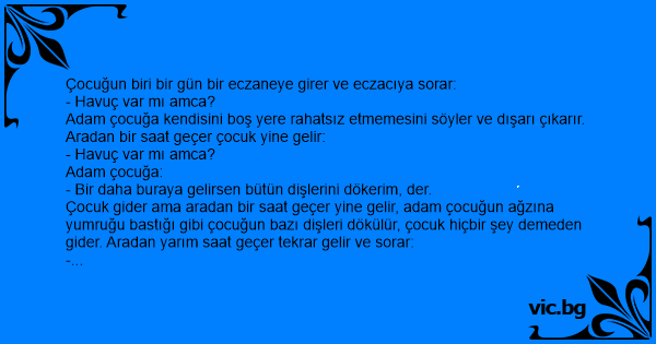 Çocuğun biri bir gün bir eczaneye girer ve eczacıya sorar: